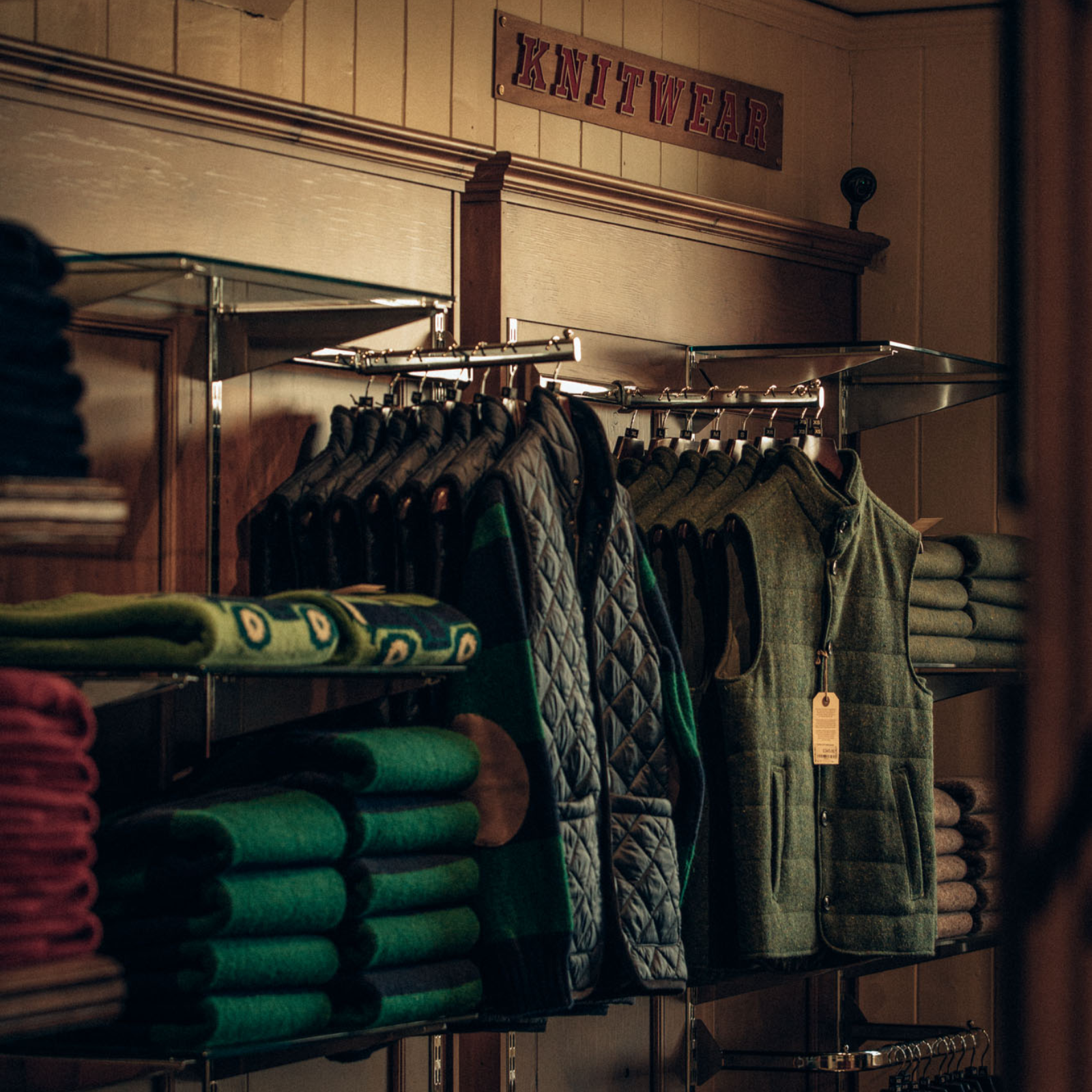 We take a considered approach to presentation, from photographing our collections in the Highland landscape to furnishing our shops with salvaged pieces and original 1800s fittings—celebrating character, reducing waste and staying true to our roots.